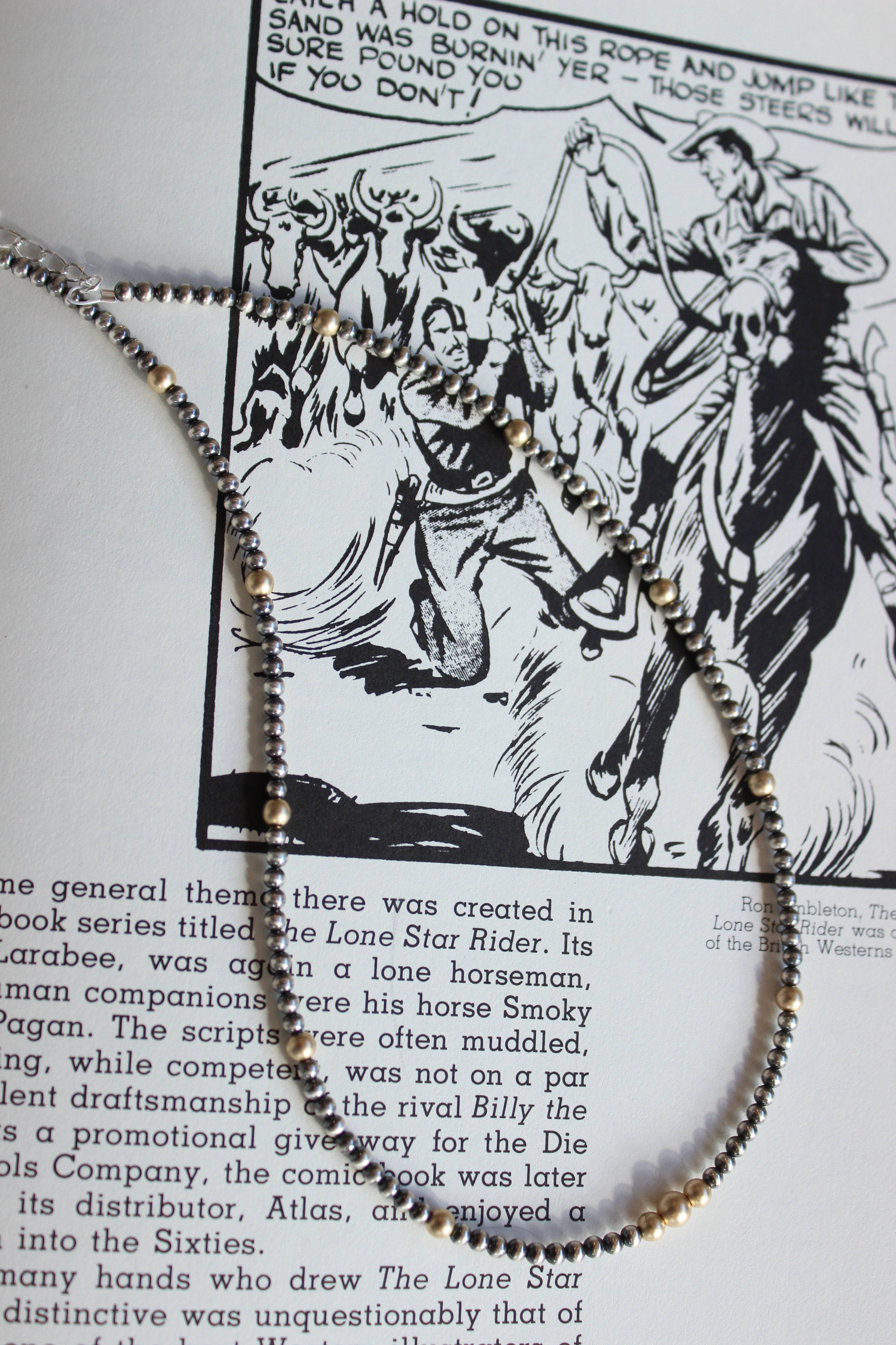 Gold Navajo Pearl 3mm-5mm Beaded Necklace -